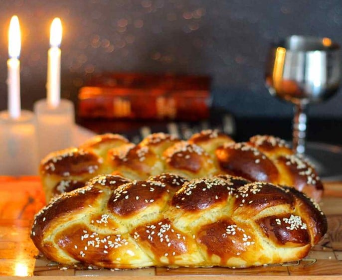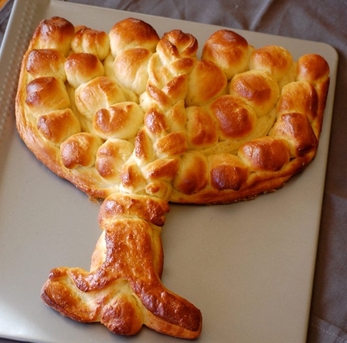 ‘Hallah en forme de menorah, le candélabre religieux à sept branches