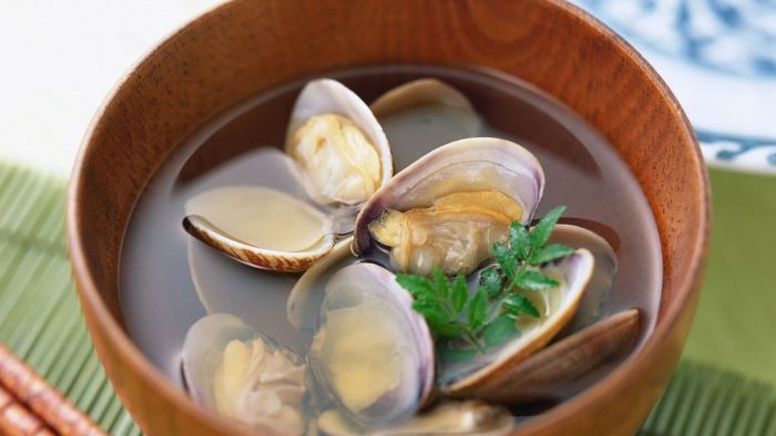 Palourdes cuites à la vapeur servies dans leur bouillon