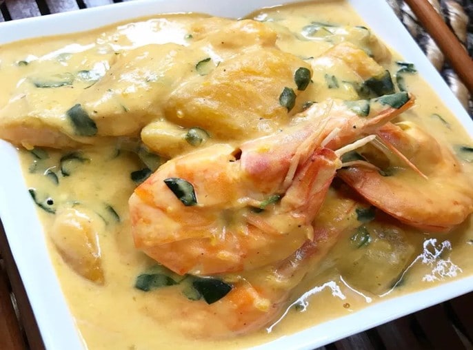 Ginataang hipon (crevettes cuites au lait de coco)