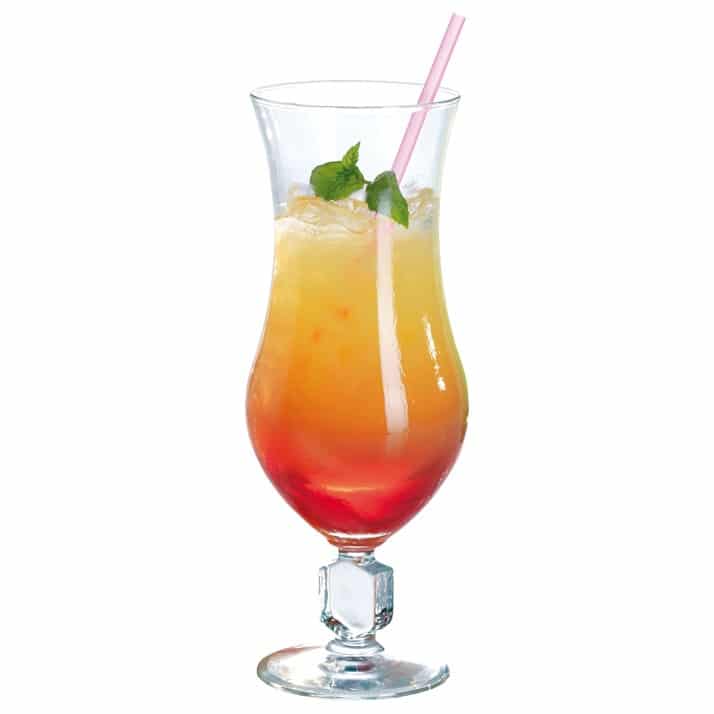 Histoire du cocktail et du verre ouragan : Le cocktail ouragan (à base de rhum, jus de citron vert, et sirop de fruit de la passion) est originaire du bar de jazz-restaurant Pat O’Brien’s Bar du quartier français de La Nouvelle-Orléans en Louisiane, des années 1940.